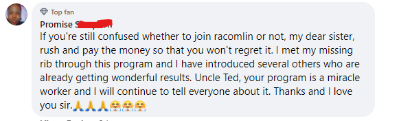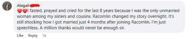 If I tell you that racomlin will 100% work for you and get you a husband ASAP, I’d be a lying, cheating, hungry marketer who is nothing but desperate to make quick money off you.